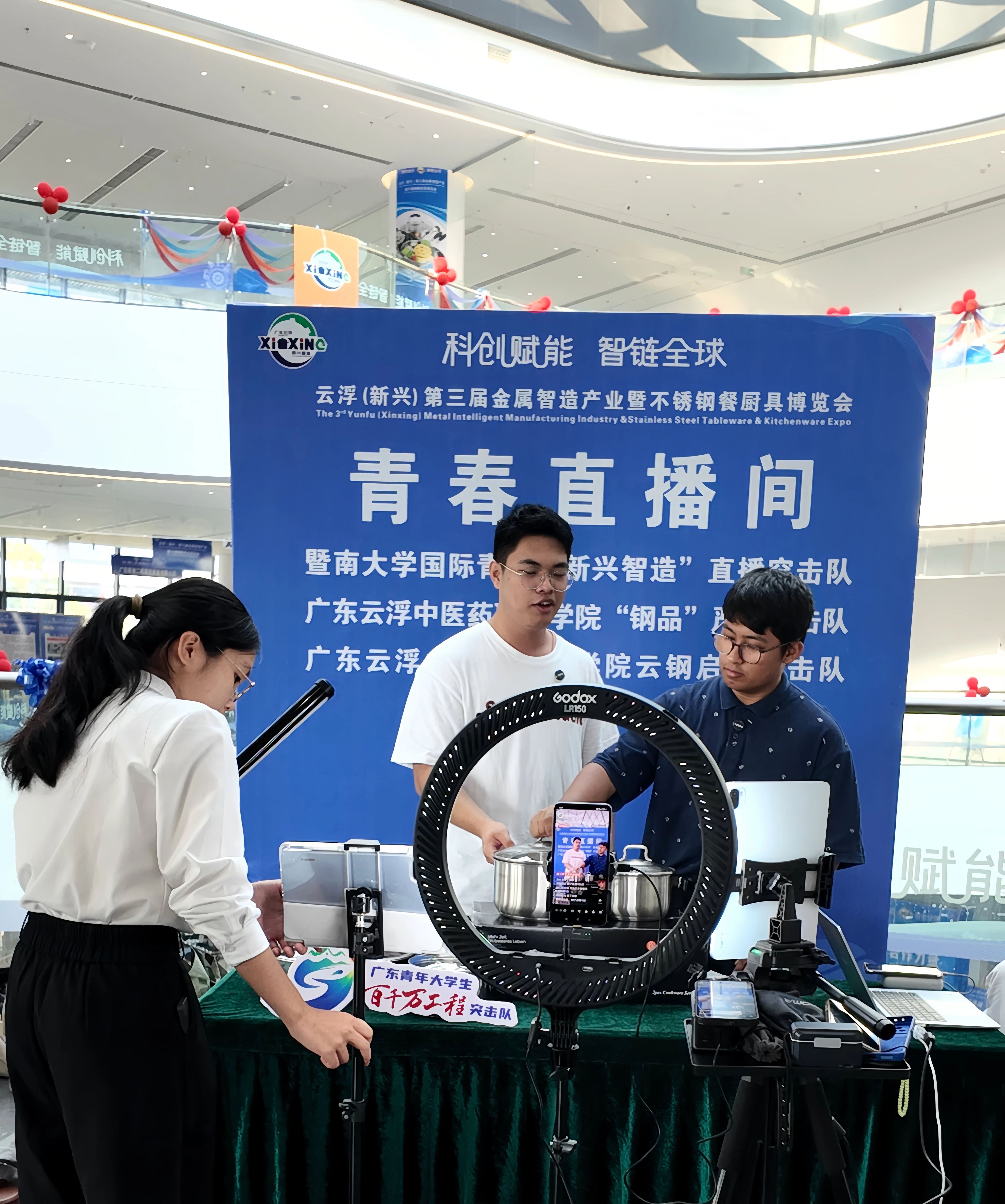 “这些餐具采用医用级不锈钢宏琳优配,既安全又耐用!”来自暨南大学国际学院的孟加拉国留学生,正在用母语热情推介;一旁的马来西亚侨生则用粤语与观众互动:“呢个煲唔止颜值高,仲好智能㗎!”这是10月19日发生在云浮(新兴)第三届金属智造产业暨不锈钢餐厨具博览会上的一幕,这些留学生都是一支由高校学生组成的直播团队的成员。